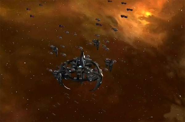 解析:此阵容造价低廉,对科技要求不高,适合前期使用。战术上先以护卫舰承受伤害,再用突击舰与掠夺者定点清除敌方炮台与精炼站;待敌方火力减弱后,派出切割者集群清扫战场。