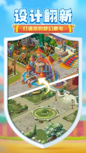 通过消除闯关获取星星,消耗星星推进剧情装扮任务;装修风格变化多端,除了常规的客厅、卧室、厨房,还包含派对房、游戏房、车库、花园等特色主题空间。