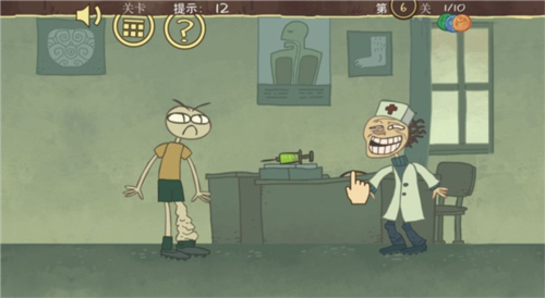 第八关:先点击角色的头部,头掉落后再次点击头部,即可通关。