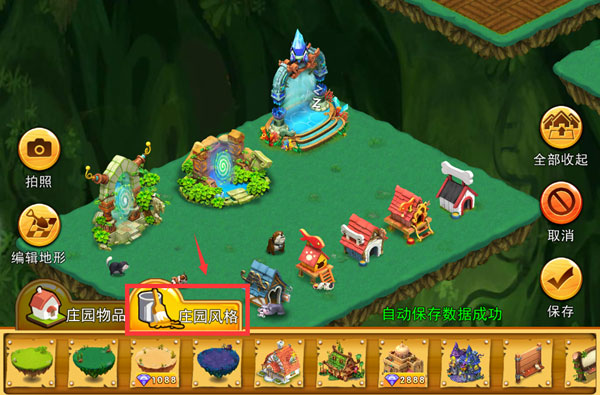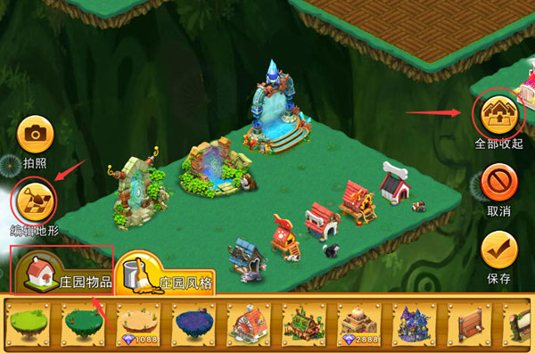 3、使用【全部收起】功能可将庄园内所有可移动物品暂时收入【庄园物品】栏,方便重新布局。
