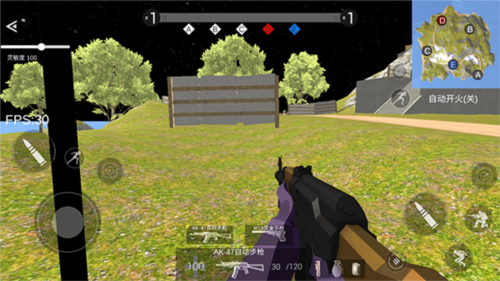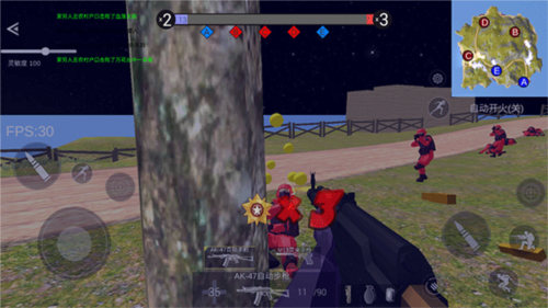 4、游戏开始后利用左边摇杆操控角色的移动,右边为射击、跳跃、蹲下等操作