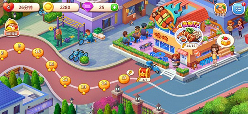 8、每进入新大陆时,货币会重置,初期经营较难;可先在前十关刷紫色循环关卡赚金币,尽量将厨具与食材升满,后续闯关会更轻松。
