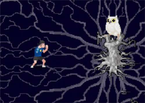 在大厅向右移动可进入另一房间,房间中央有一只白色猫头鹰,靠近并点击即可对话交互。