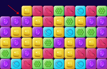 3、彩色糖果与条纹糖果或包装糖果交换时,场上所有同色糖果将变为对应的特殊糖果并立即触发效果。