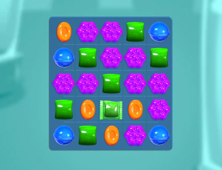 例如在下图中,如果机械地从上方开始消除,原本的五连消机会就会消失;正确做法是先消除两个紫色糖果,再完成绿色五连消,从而获得更高分数。