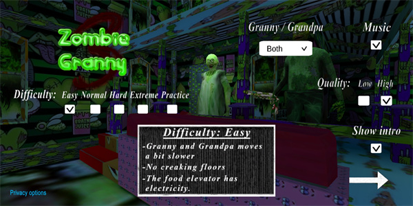 2、接下来可以选择游戏的难度等级,并且能够决定由爷爷或是奶奶来担任主要的追击者。