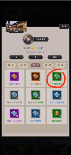 4、炼制紫华青玄丹:成本2600黄金,服用后增加历练次数,净赚约2500黄金。