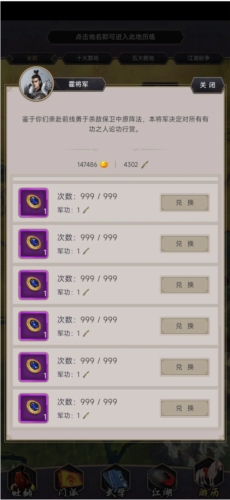 2、修正部分武学精要品质与升级消耗错误;