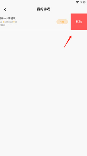 2、在游戏列表中找到目标游戏,向左滑动并点击出现的“移除”按钮即可。