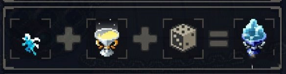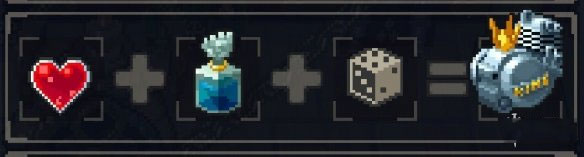 通过第一大关卡后概率出现。在此可将三件道具合成为一件,固定配方显示于界面左上角。使用非配方道具组合,则会随机合成配方列表外的道具。