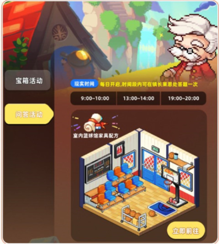 每日特定时段,居民可前往镇长莱恩处参与答题,每日限一次;参与趣味问答即有机会随机获得室内篮球馆家具配方。