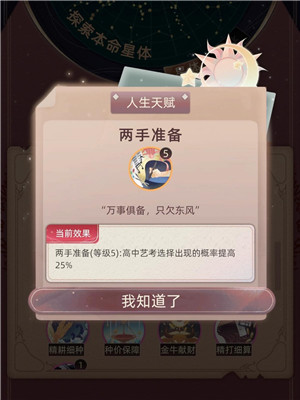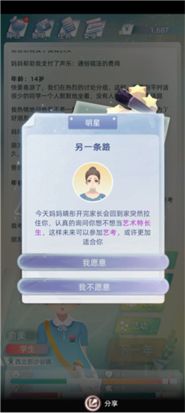 9、若报名培训班后未触发艺考选项,建议从12岁起每年都向父母申请报班;如果仍未触发,可以考虑携带增加事件概率的天赋进行游戏。