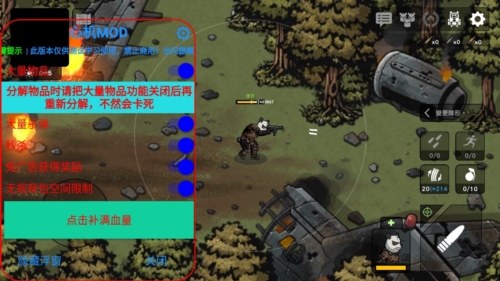 3、进入游戏后,左侧虚拟摇杆控制移动,右侧按键负责射击、拾取等动作;