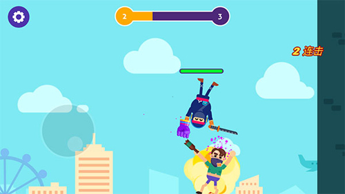 游戏中各种装扮的纸片人手持武器在空中飘浮回转、相互追逐攻击。拥有主角光环的你最为勇猛,随意挥动锤子或其他顺手武器,便能瞬间击败AI小兵,顿时空中肢体纷落,场面颇为激烈。