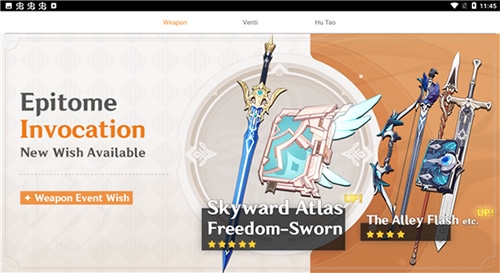 4、支持切换不同祈愿场地,不同卡池对应不同的UP角色与武器库。