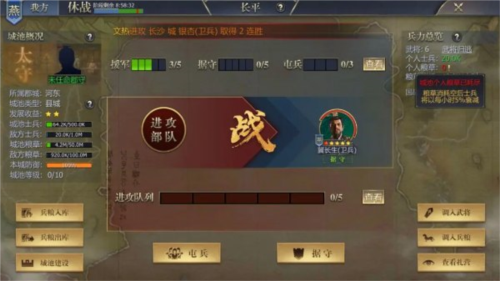 城池援军数量由城池等级决定;一般可先进行破坏以降低等级与守军数量,然后再发起进攻;当然,若实力足够强大,也可选择无视守军,一路强攻到底。