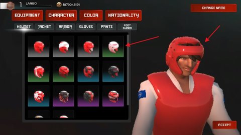 1、启动游戏进入角色界面,挑选拳手外观与运动装备,点击右下角【ACCEPT】确认。