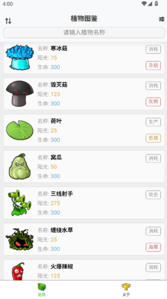 软件包含全部植物与僵尸的详细资料,供玩家自由查看;