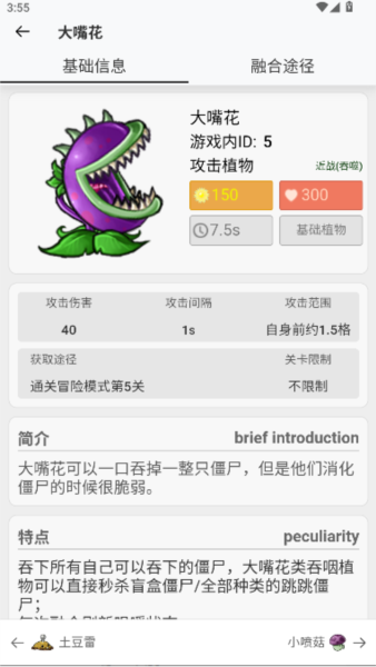 pvz融合版图鉴是为植物大战僵尸融合版设计的辅助工具,该版本中植物通过特定组合获得新形态,玩家常需查询合成公式。本应用收录全部植物数据与特殊配方,方便玩家随时查阅,简化游戏过程。