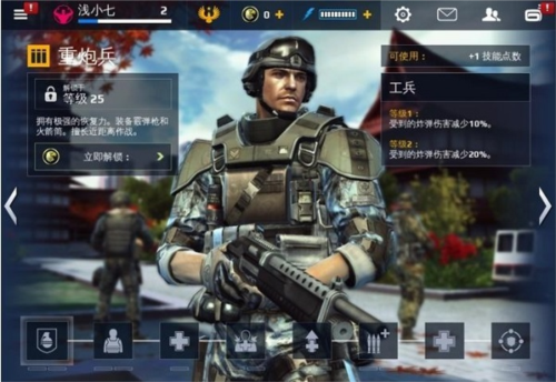 游戏包含七种可选兵种,从基础突击步兵到专业工兵,再到高级狙击手与炮兵等,基本覆盖现代军队主要类型。每个兵种具备独特技能,为游戏增加了丰富选择性与可玩空间。