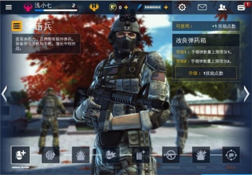 1.改良弹药箱:等级一:手榴弹携带上限增加1;等级二:手榴弹携带上限增加2;升级需消耗2技能点。
