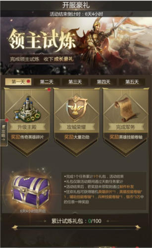 领主试炼:完成试炼积累狂欢礼包,开出珍稀英雄与技能碎片。