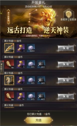 充值馈赠:充值获“远古秘宝”,兑换强力神纹与稀有技能;
