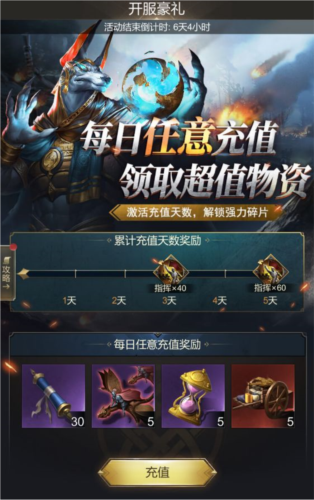 活动期间每日充值任意金额,连续五天即可获得100个“指挥”技能碎片;该碎片是培养多位传奇英雄的关键材料,能显著提升英雄战力。
