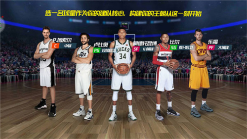 1、开局需从系统提供的五名球星中选择一位作为建队核心,选项包括中锋P.加索尔、控卫卢比奥、小前锋阿德托昆博、分卫比尔与大前锋乐福。