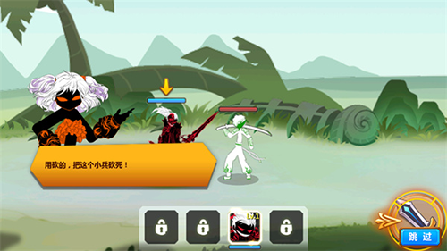 3、点击屏幕进行对话;对话结束后,点击攻击图标即可挥砍敌人。