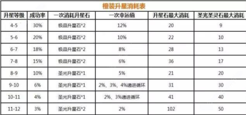 以下是橙色装备升星的材料消耗参考,有助于规划资源使用;