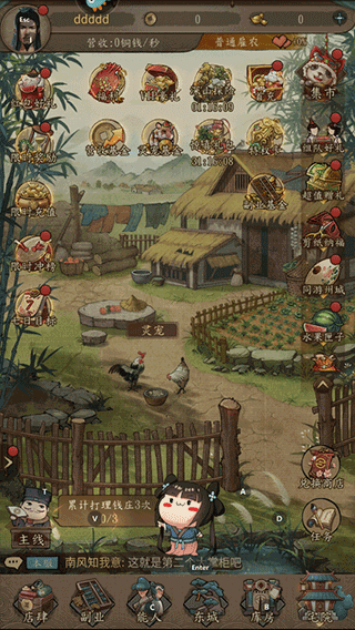 店铺经营:在主城可开设药材、布匹、粮油等多种店铺,通过升级陈设与优化布局吸引顾客;