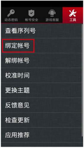 激活成功后,在工具栏目下找到绑定账号选项并进入。
