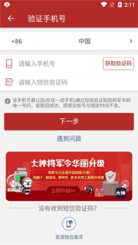 首先在软件界面输入手机号码及对应的验证码以完成激活验证。