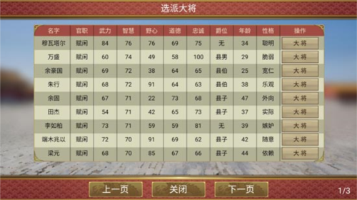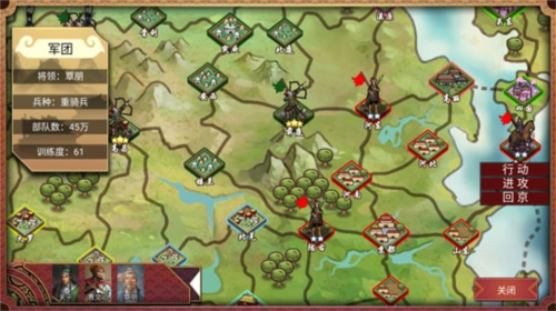 在兵部选择组建军团,派遣一名将领统兵;将领的武力与智力影响部队战斗力,高智力者还能施展计谋,同时应选择野心较低、忠诚度较高的将领。