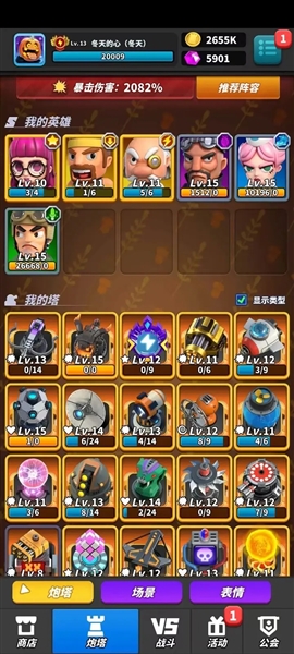 1、主流阵容:黄金加特林,仿生蛇,魔镜,分裂装置,克隆;角色选用雷电博士或陆战队队长。适合微氪玩家。
