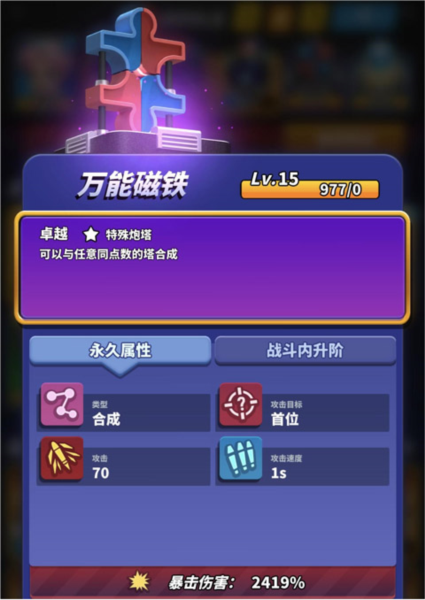 万能磁铁:可与同点数任意炮塔合成,用于最大化利用克隆与仿生蛇;若拥有魔镜,可将其替换为魔镜。