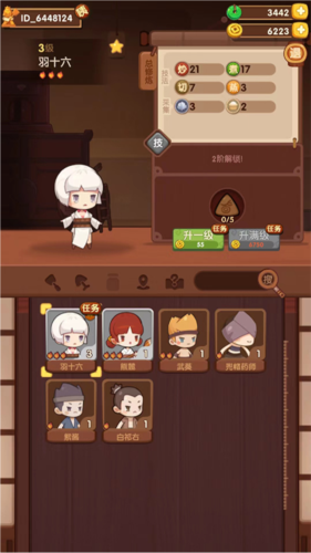 5、羽十六:凭借女孩特有的细心与耐心,练就了百发百中的射术;技能为稀有客人出现概率增加30%,三星角色。