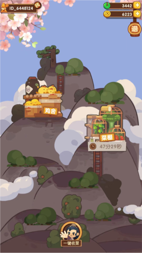 6、探索界面包含鸡舍与菜地,能够查看可收获的物资种类与剩余等待时间。