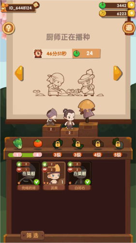 2、探索:随着主线任务推进逐步解锁新区域,池塘地图解锁较晚;消耗金币提升地图等阶可以解锁更多可采集的食材种类;探索获得的食材种类与厨师的总采集值相关;获得的食材数量则与派遣的厨师人数挂钩;探索所需时间受地图等级与厨师人数影响。