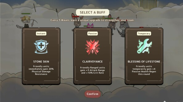 2、每次冒险中,通过招募各类小动物来组建你的核心战斗队伍。