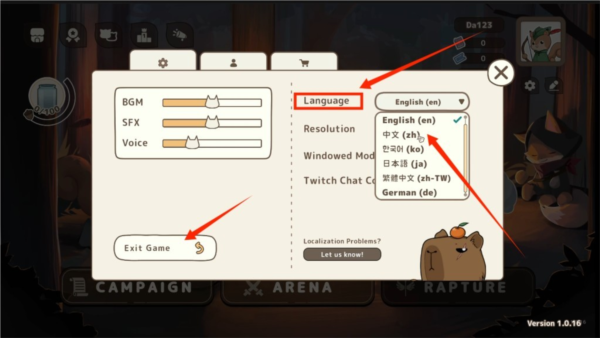 返回游戏主界面,语言即已成功切换为中文。