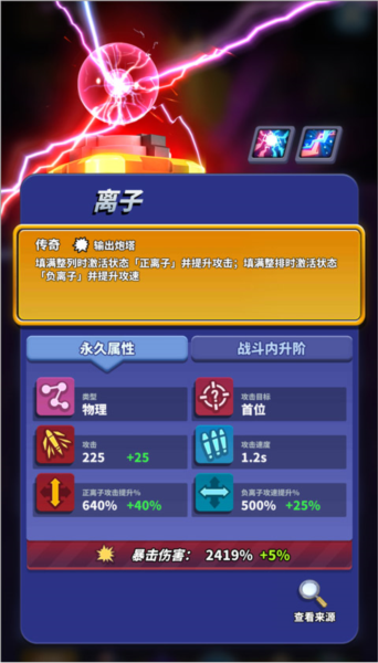 5、进入对战界面,点击蓝色电池按钮放置炮塔;炮塔会攻击通道上的僵尸,击败后可获得电池奖励,用于放置更多炮塔;率先消灭僵尸的一方获胜。