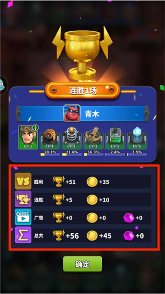 7、对战结束后进入结算界面,展示胜利方阵容与所获奖励。