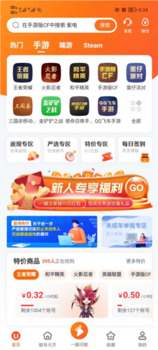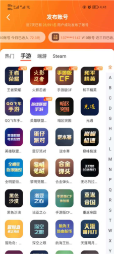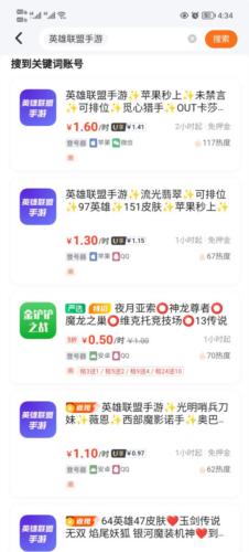 海量精品账号库:特价账号最低0.1元起,包含高段位大神账号、炫酷皮肤与V8特权等丰富选择。
