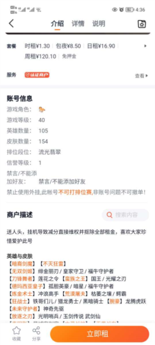 3. 仔细核对账号信息,确认无误后点击立即租赁按钮。