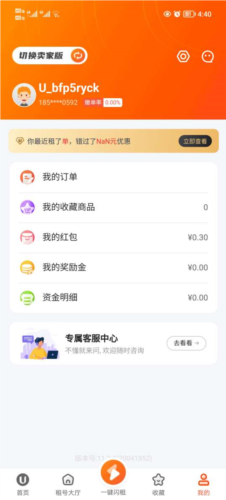 1. 在我的个人界面中,点击切换至卖家版本。