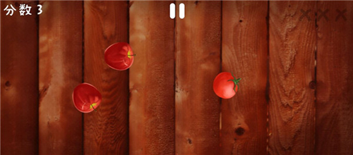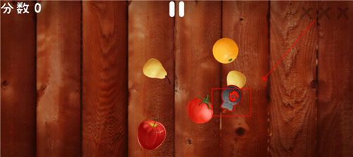 4、需要注意的是,场景中除了水果还会出现炸弹,一旦切到炸弹游戏便会立即结束。