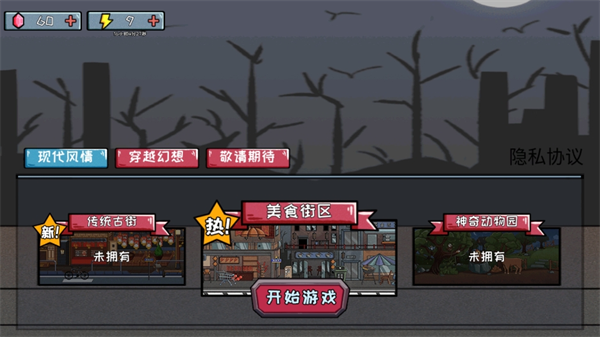 2、界面上展示多种闯关模式,例如传统古街、美食街区、神奇动物园、惊奇石窟、埃及风光、比武招亲等,选择喜欢的模式即可开始躲藏挑战;
