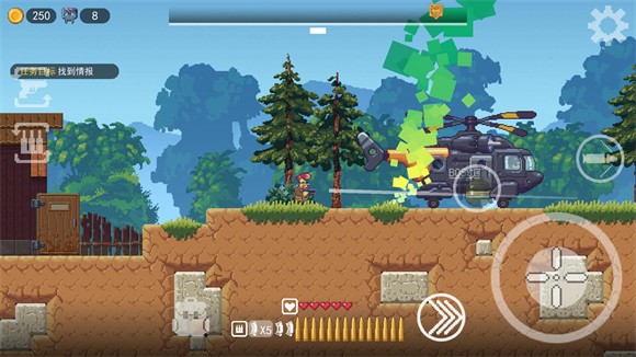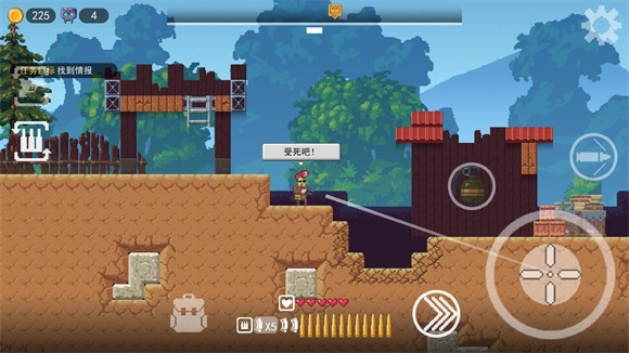 3、任务开始后,左侧虚拟摇杆控制移动,右侧按钮则负责射击、冲刺与使用道具。